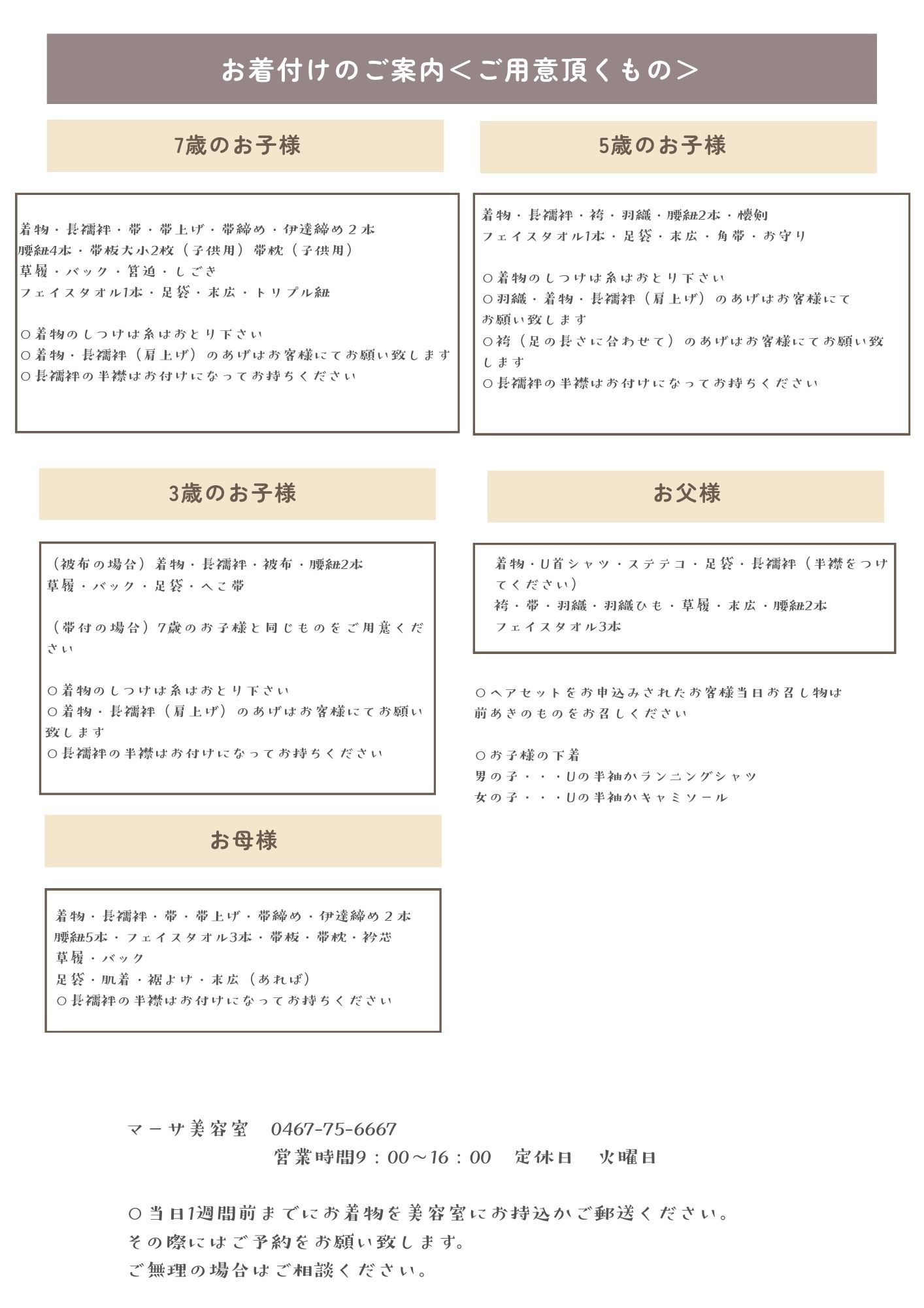 ※10月から12月の衣裳選びにつきましてはご利用の3日前を過ぎるとお急ぎ料として3,300円(税込)料金が発生します。